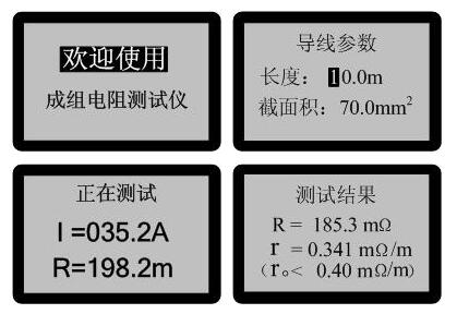 按“→”键,移动光标到长度,按“↑”、“↓”键修改数字(数字0-9递减或递增),此项内容便于计算单位长度的直流电阻;