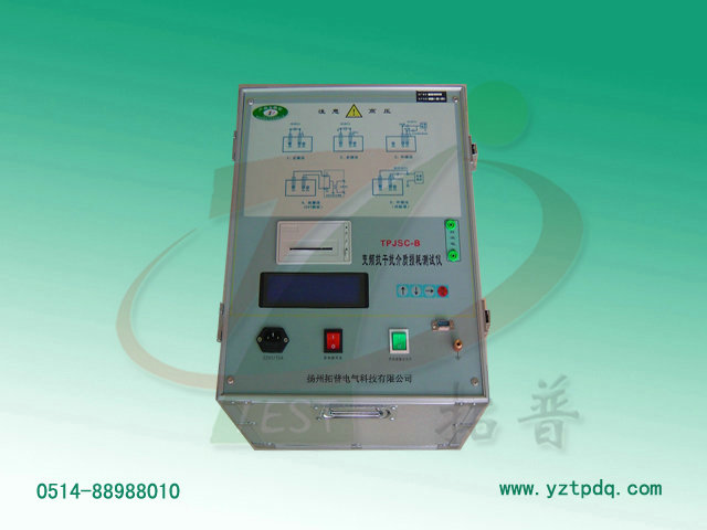 TPJSC-B 变频抗干扰介质损耗测试仪是一款新型介质损耗测试仪。随着城乡电网改造的不断深入,高电压电站越来越多,倒相法、移相法,已不能满足现场测试需求,异频测量(变频),把50HZ变成其它频率,可以排除干扰,提高测量可靠性和准确性,完全抑制电场干扰,满足强电场下的使用要求,该仪器体积z小、重量z轻、便于携带。仪器还具有灵活的扩展性,通过RS232接口与计算机连接,应用功能软件,对仪器升级。人性化设计,全自动操作本仪器,完全适合220kv及以下电站有干扰现场的试验。